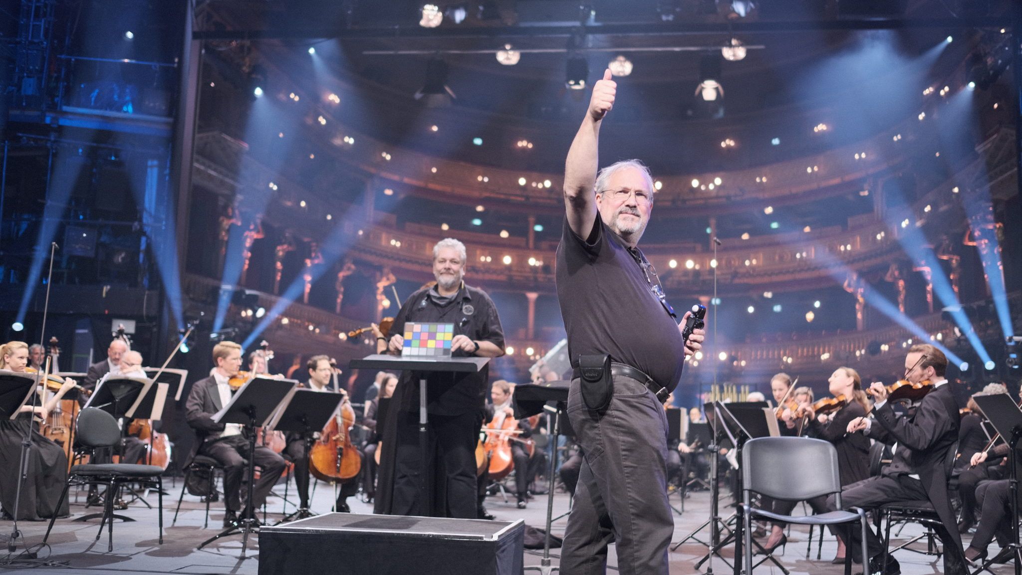 Aus der Not wurde Tugend und das Orchester wurde so umpositioniert, dass die Musiker mit dem Rücken zum leeren Publikumsbereich spielten. DoP Wolfram Zöttl zauberte aus diesem leeren Saal einen elegant funkelnden Hintergrund.