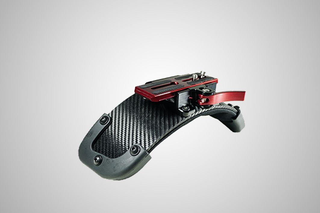 Leichtes, ergonomisches Zacuto Shoulderpad mit Quickrelease-Funktion. Bestehend aus Carbon und Gelpad.